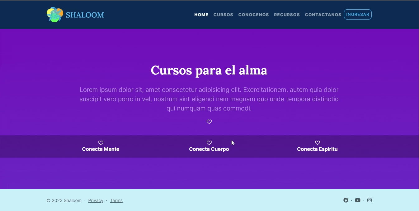After applying the adjustments and changes in the testing and iteration phase, the shaloom website is presented as follows: